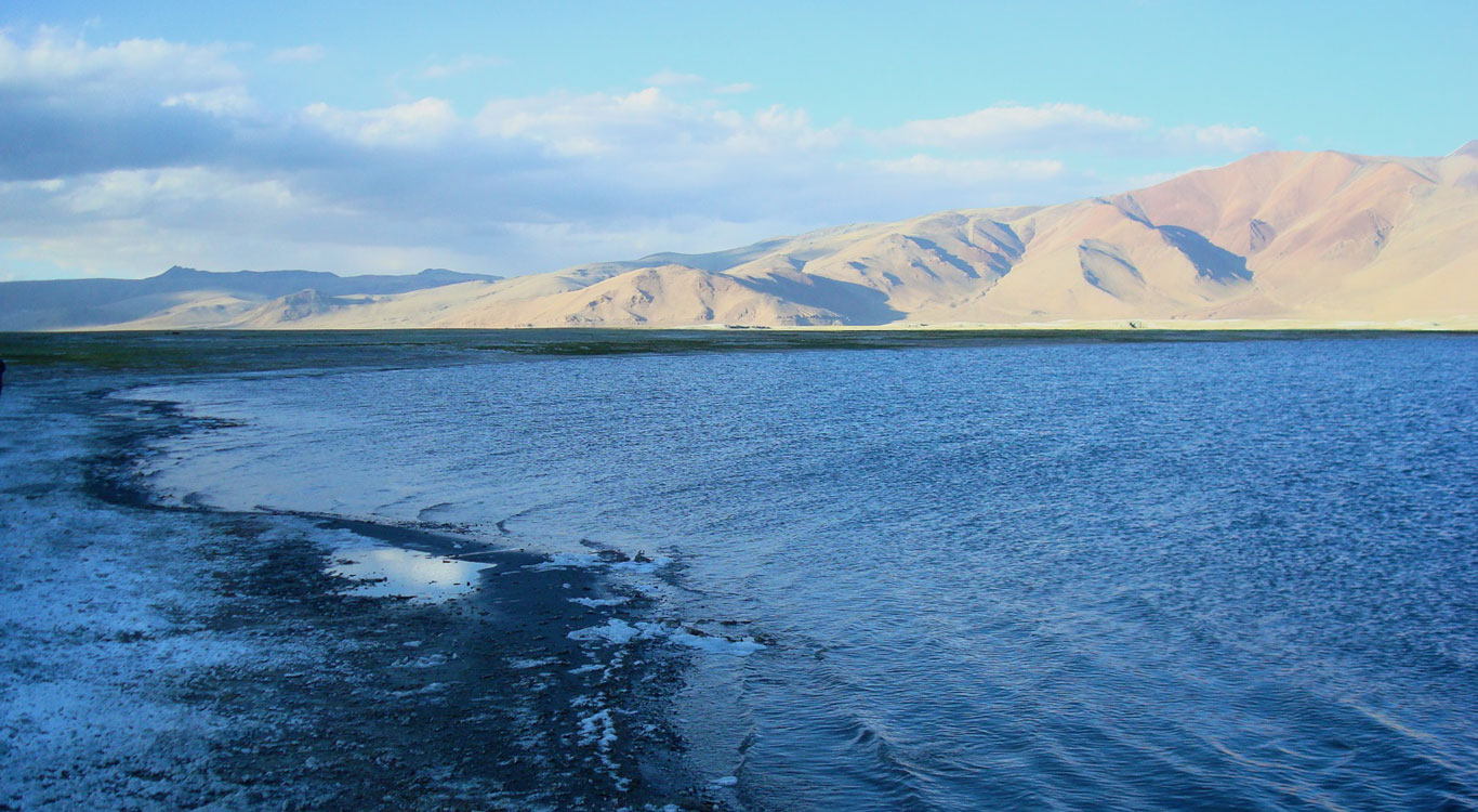 The Tso Kar or Tsho kar is a fluctuating salt lake known for its size and depth situated in the Rupshu Plateau and valley in the southern part of Ladakh in India. It is also recognised as India's 42nd Ramsar site connected by an inlet stream at its south-west end to a small lake, Startsapuk Tso, and together they form the 9 km More plains pool, which is dominated by the peaks of two mountains, Thugje (6050 m) and Gursan (6370 m). Due to the high altitude, the climate is extreme in the winter; temperatures below -40 °C (-40 °F) are not uncommon. In the summer the temperature rises above 30 °C (86 °F), with extreme fluctuations during the day. Precipitation in the form of either rain or snow is extremely rare.