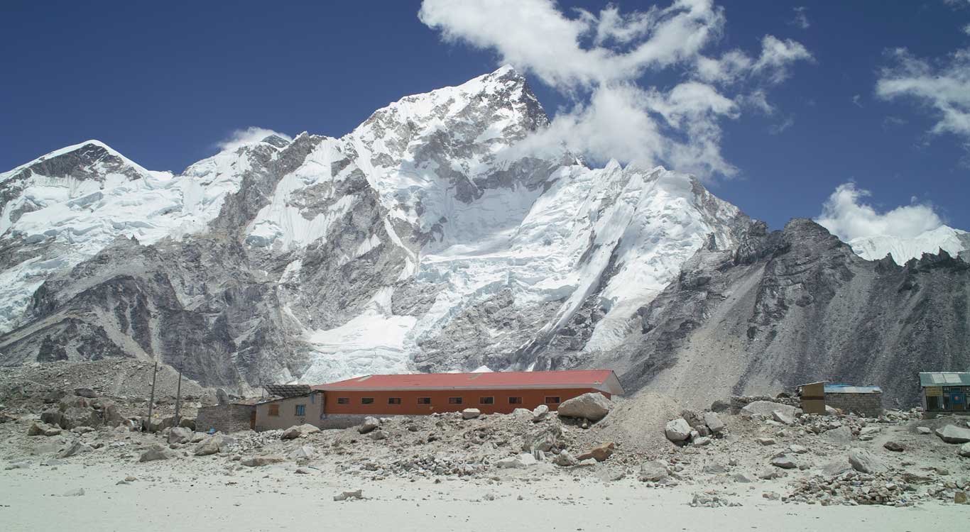 Gorak Shep or Gorakshep is a small settlement that sits on the edge of a frozen lakebed covered with sand in Nepal with the same name. It is found at an elevation of 5,164 metres elevation, near Mount Everest. The village is not inhabited year-round.