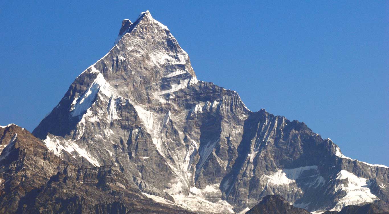 Machapuchare, Machhapuchchhre or Machhapuchhre, is a mountain situated in the Annapurna massif of Gandaki Province, north-central Nepal. Its highest peak has never been officially climbed due to the impossibility of gaining a permit from the government of Nepal.